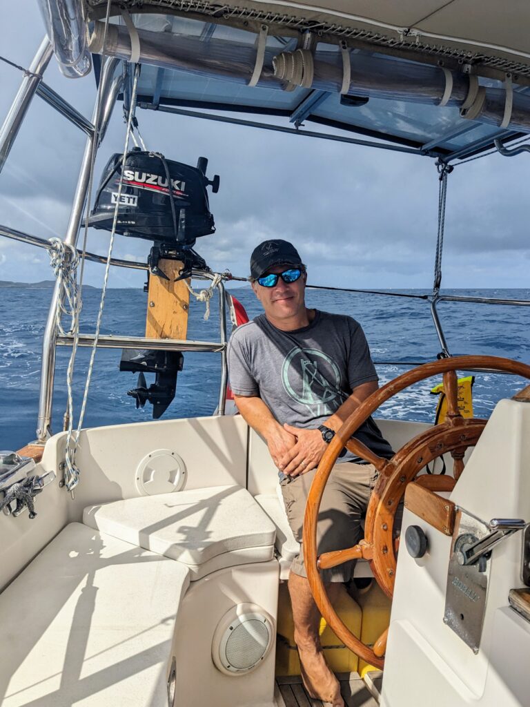 Innisfree is on our way out of Marigot Bay, SXM – Glenda and I are all smiles.