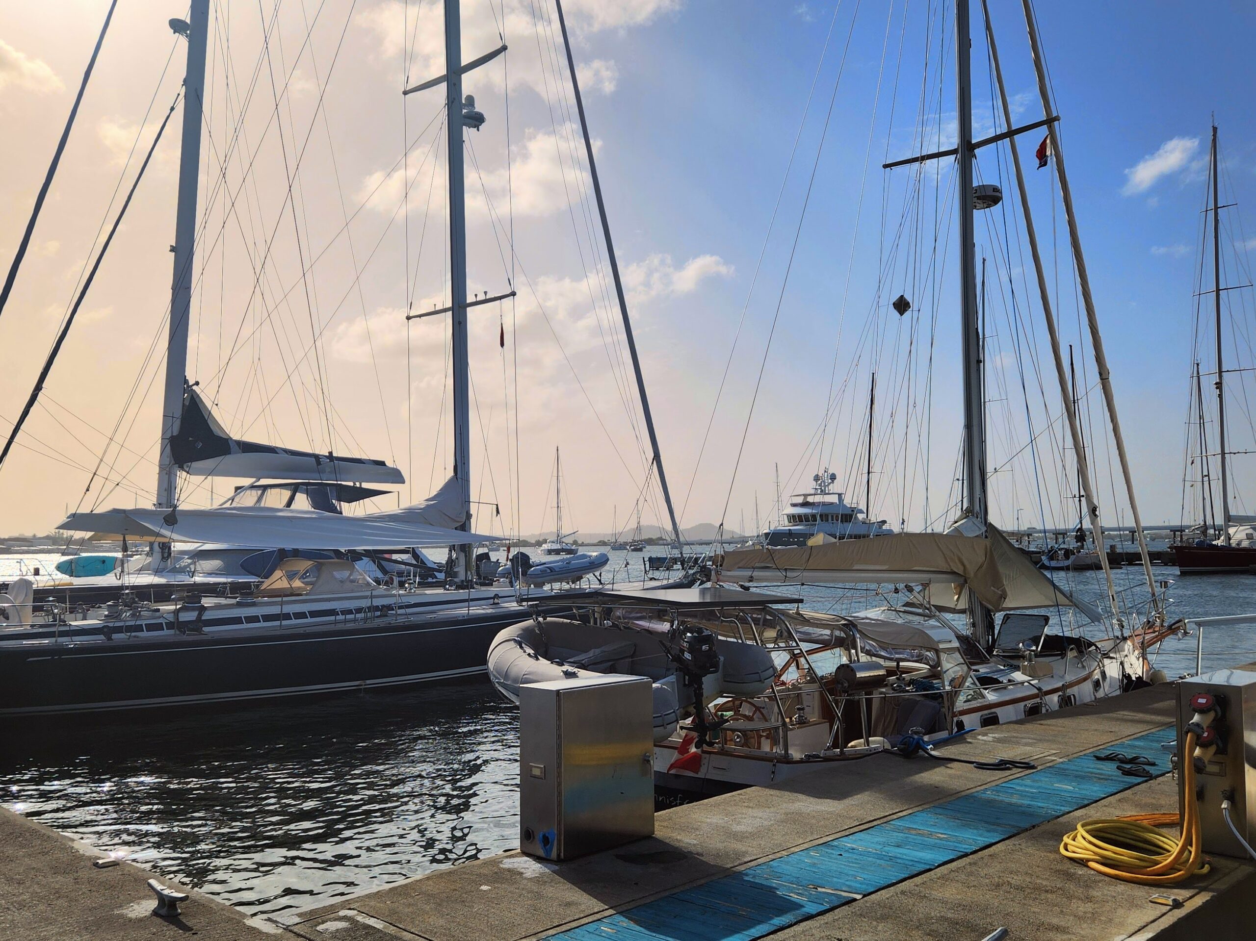 And so we wait. Today’s last minute provisioning run became shopping for a few day’s worth of food (so as not to eat the carefully planned provisions), and tomorrow’s departure from the marina can be through the 10:30am bridge instead of the 8:30am one. After so many weeks of busy preparation, it will be nice to have a few days to relax before we leave. We are staying in the marina until Thursday, and then we will move around to the French side of Sint Martin, just for a change of scenery. And if we end up stopping at the French bakery for croissants and coffee one morning, it’s a risk we’ll just have to take! 😉
